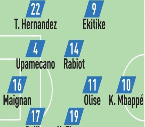队报预测法国战阿塞拜疆首发:姆巴佩、埃基蒂克、奥利塞在列